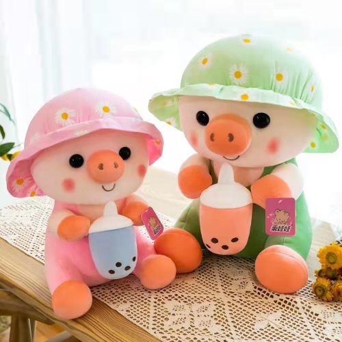 可爱奶茶杯天使猪公仔 毛绒玩具睡觉抱枕柔软 玩偶布娃娃礼物