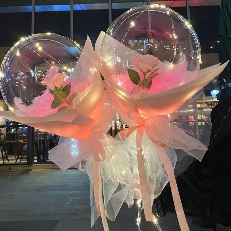 新款波波球花束夜市摆摊地推发光材料包批发求婚玫瑰景区气球花束